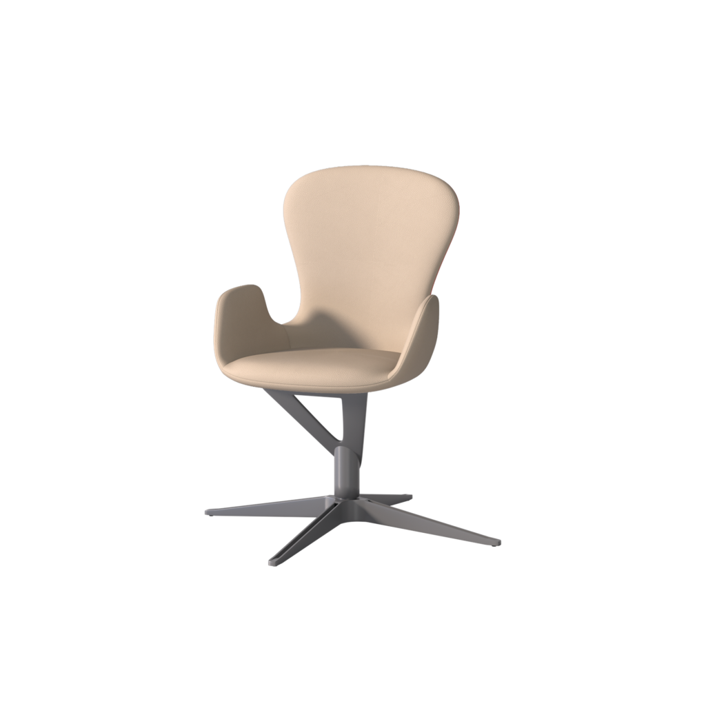 Suv is shaped by lifted volumes and fluid, upward-moving lines that give the chair a sense of openness and motion. The gently raised arm sections and enveloping backrest support the body while allowing an easy, natural sitting posture. Through its dynamic silhouette and balanced proportions, Suv introduces a feeling of ease and lightness, bringing subtle movement into both work and social environments.